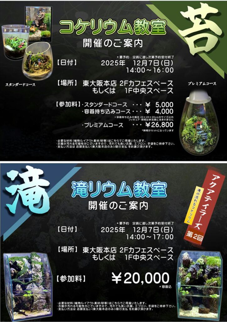 東大阪本店、神戸駒ヶ林店 コケリウム教室開催のお知らせ
